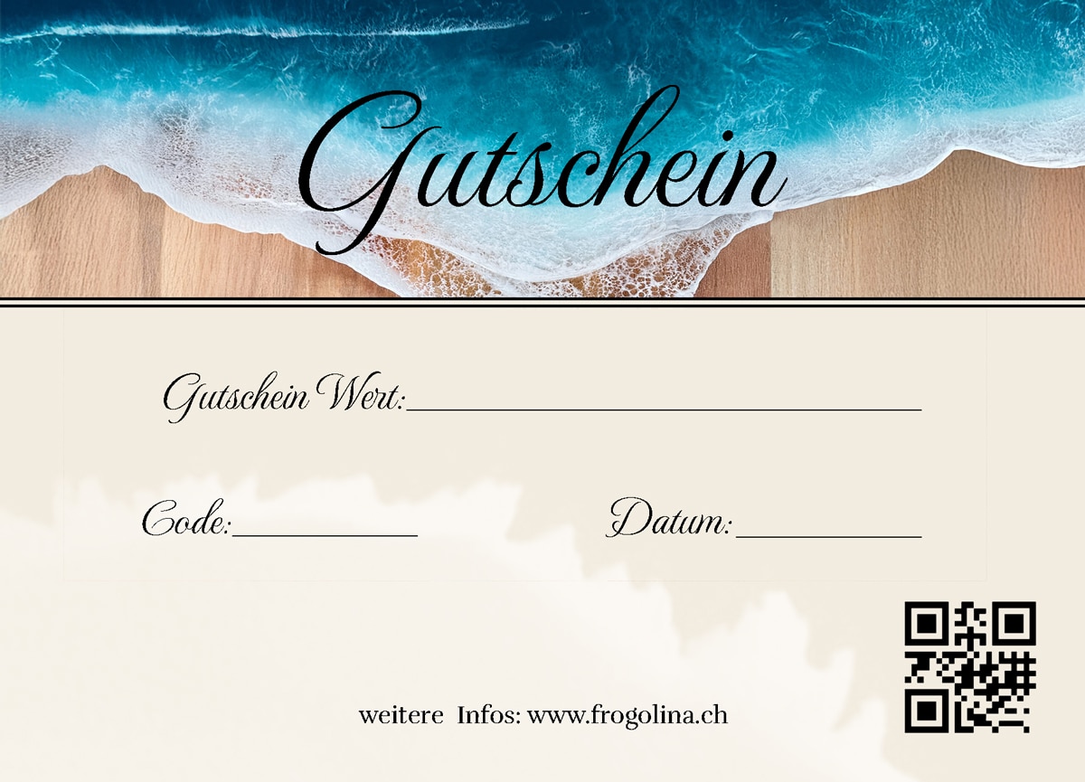 Dieser Gutschein wird physisch per Post zugesendet. Falls du den Gutschein selber ausdrucken möchtest, klicke hier: Gutschein Geldbetrag – Digital (zum selber Ausdrucken) – Frogolina