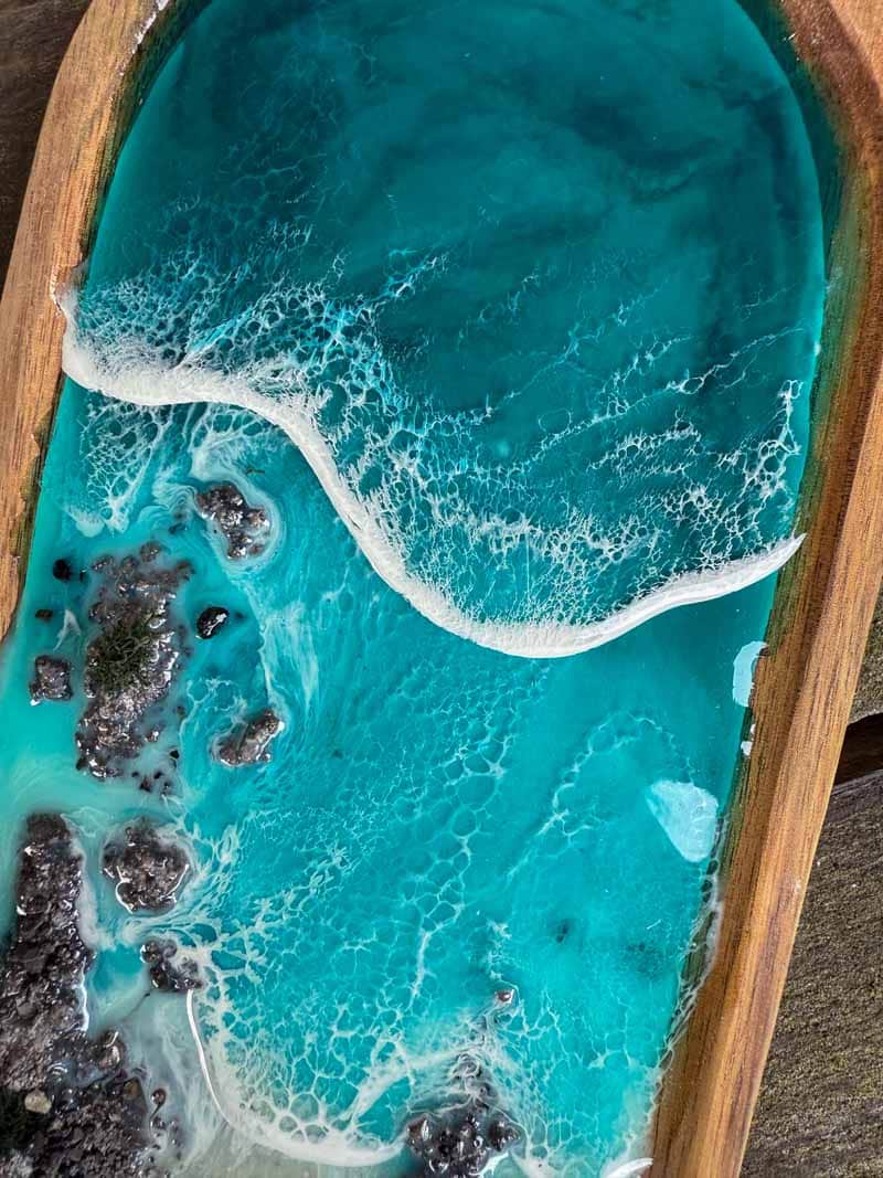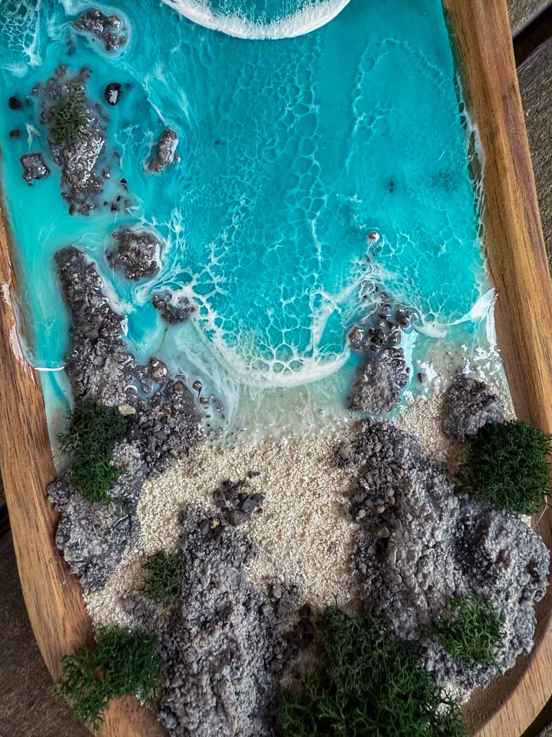 Jedes Stück ist handgefertigt, das Ocean-Muster kann leicht vom Produktfoto abweichen. Kleine Unterschiede in Farbe und Gestaltung sind möglich. Farbabweichungen können zudem durch fotografische Lichtverhältnisse entstehen.