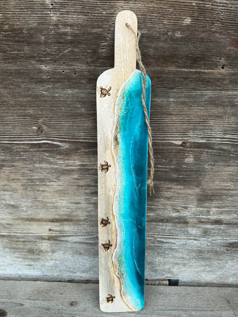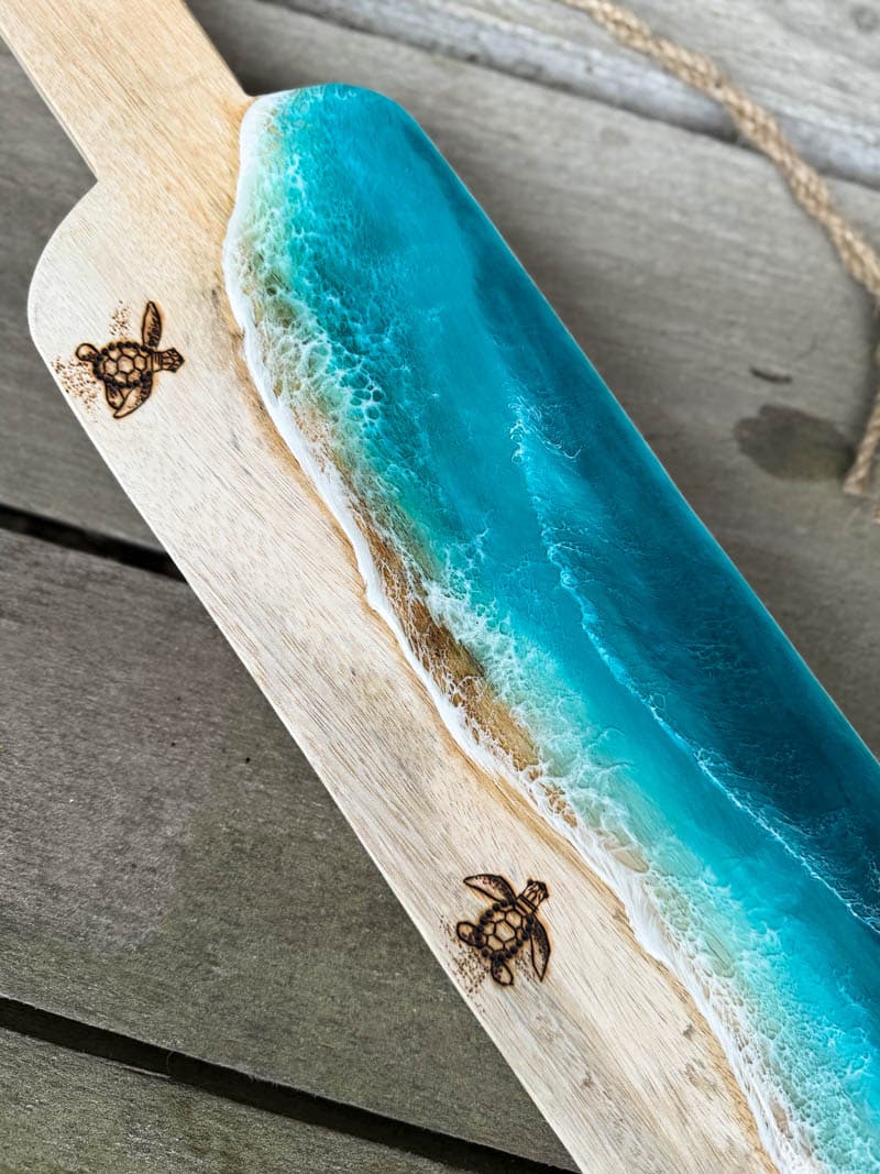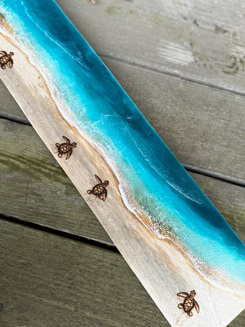 Achtung! auf dem Epoxidharz sollte nicht geschnitten werden. Kleiner Tipp: vorne zeigen, hinten schneiden