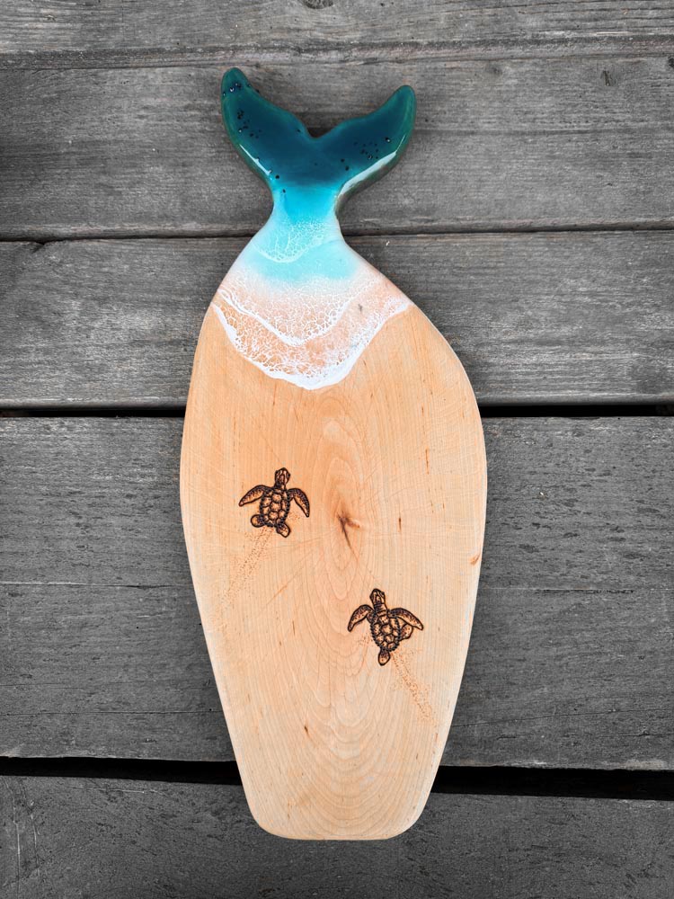 Die unverwechselbare Form einer Walflosse wurde von mir von Hand gezeichnet und zugeschnitten.