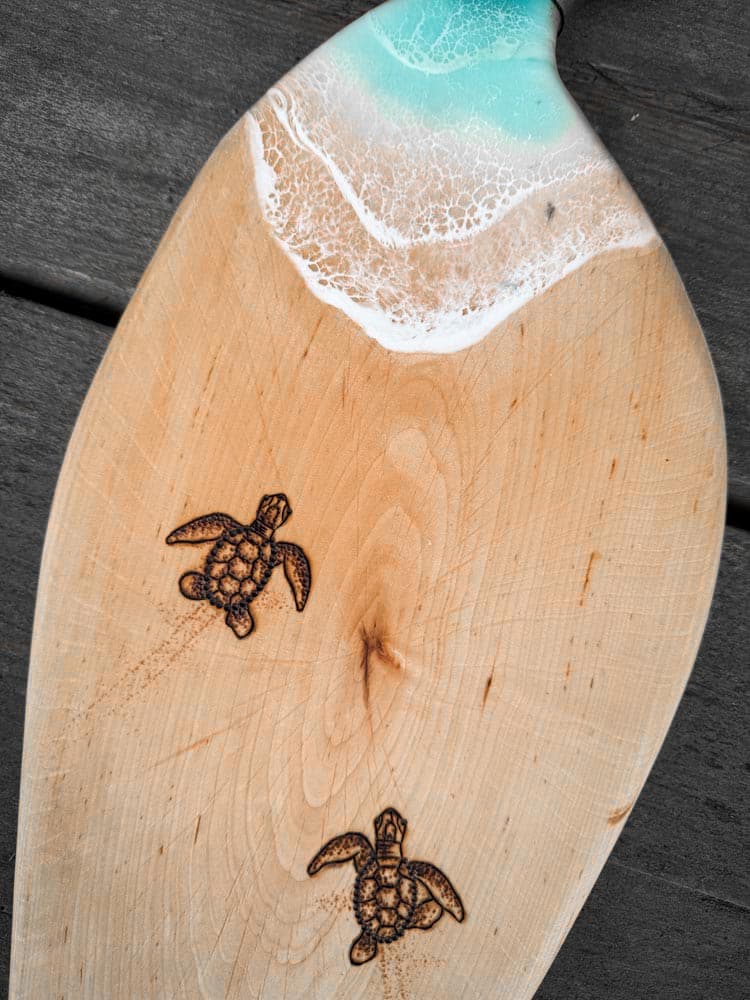 (auf dem Epoxidharz sollte nicht geschnitten werden. Kleiner Tipp: vorne zeigen, hinten schneiden)